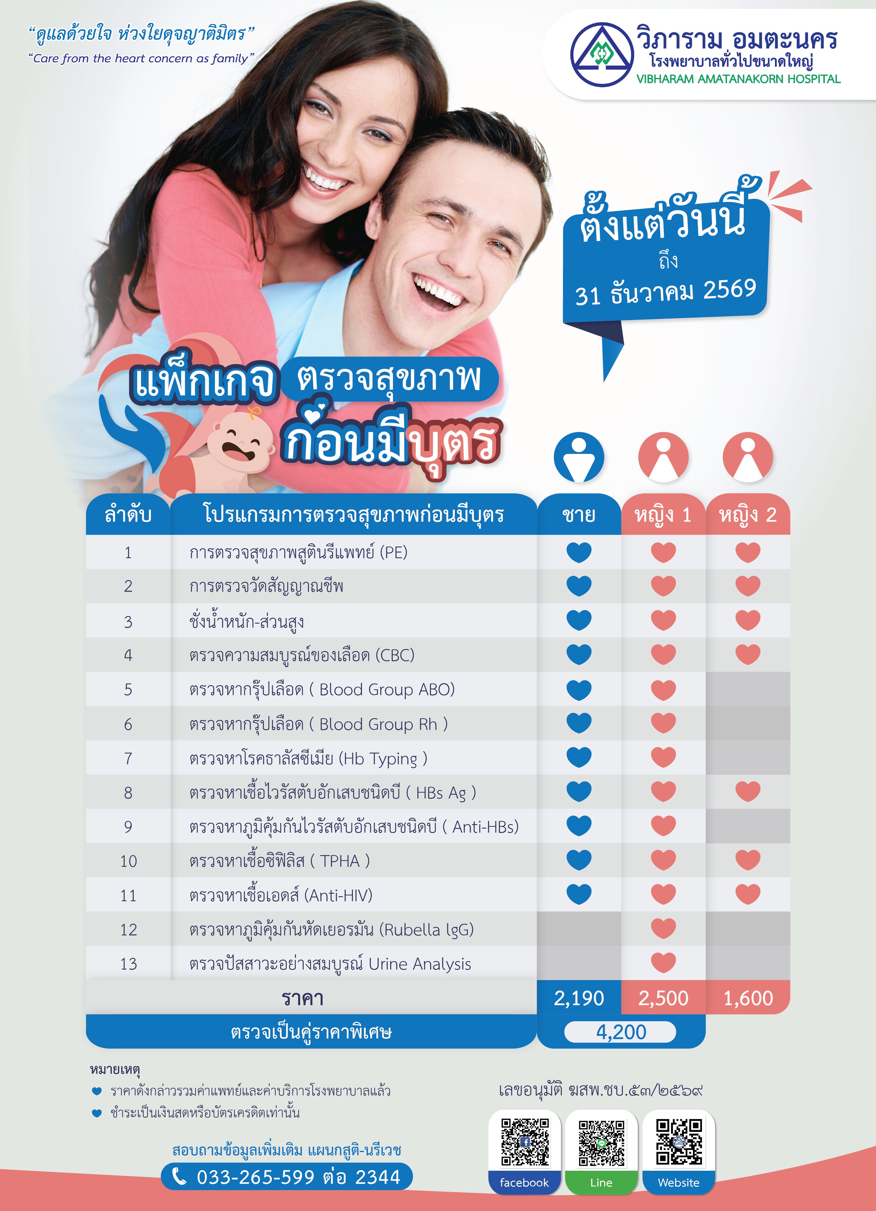 1. ราคาดังกล่าวรวมค่าแพทย์และค่าบริการทางโรงพยาบาลแล้ว